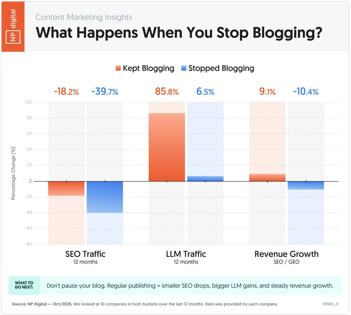 NP Digital analyzed 20 companies over 12 months: 10 that kept blogging and 10 that stopped.